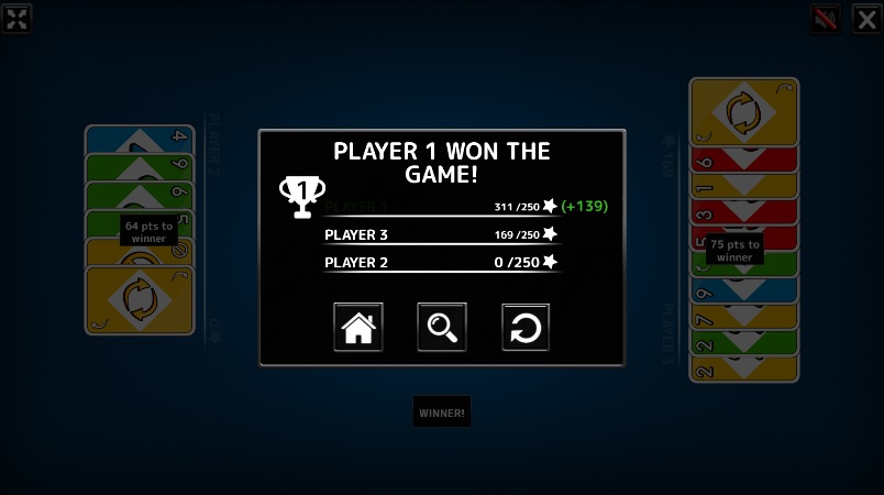 Face up to 3 computer-controlled opponents. Match cards by color or number,